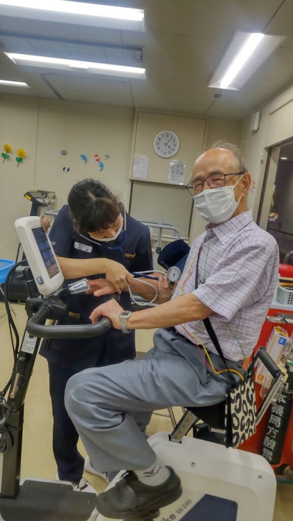 昨年急性心筋梗塞を発症し、入院。退院後、心臓リハビリに週2回通っています。当初は、体力も落ち、息切れ、不整脈などの症状もあり大変でしたが、医療・リハビリ専門のスタッフの皆さんに助言していただきながら、治療とエルゴメーター(自転車)による体力の向上に努めているところです。 本当に丁寧にお世話いただき、感謝しています。ありがとうございます。