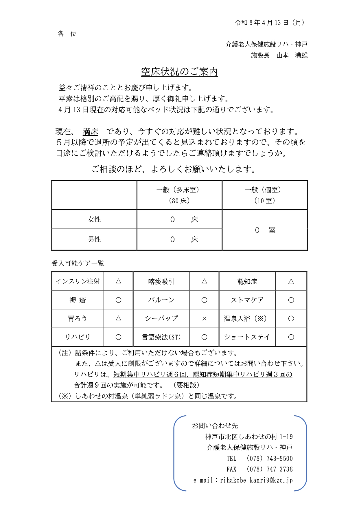 令和8年4月13日 空床情報